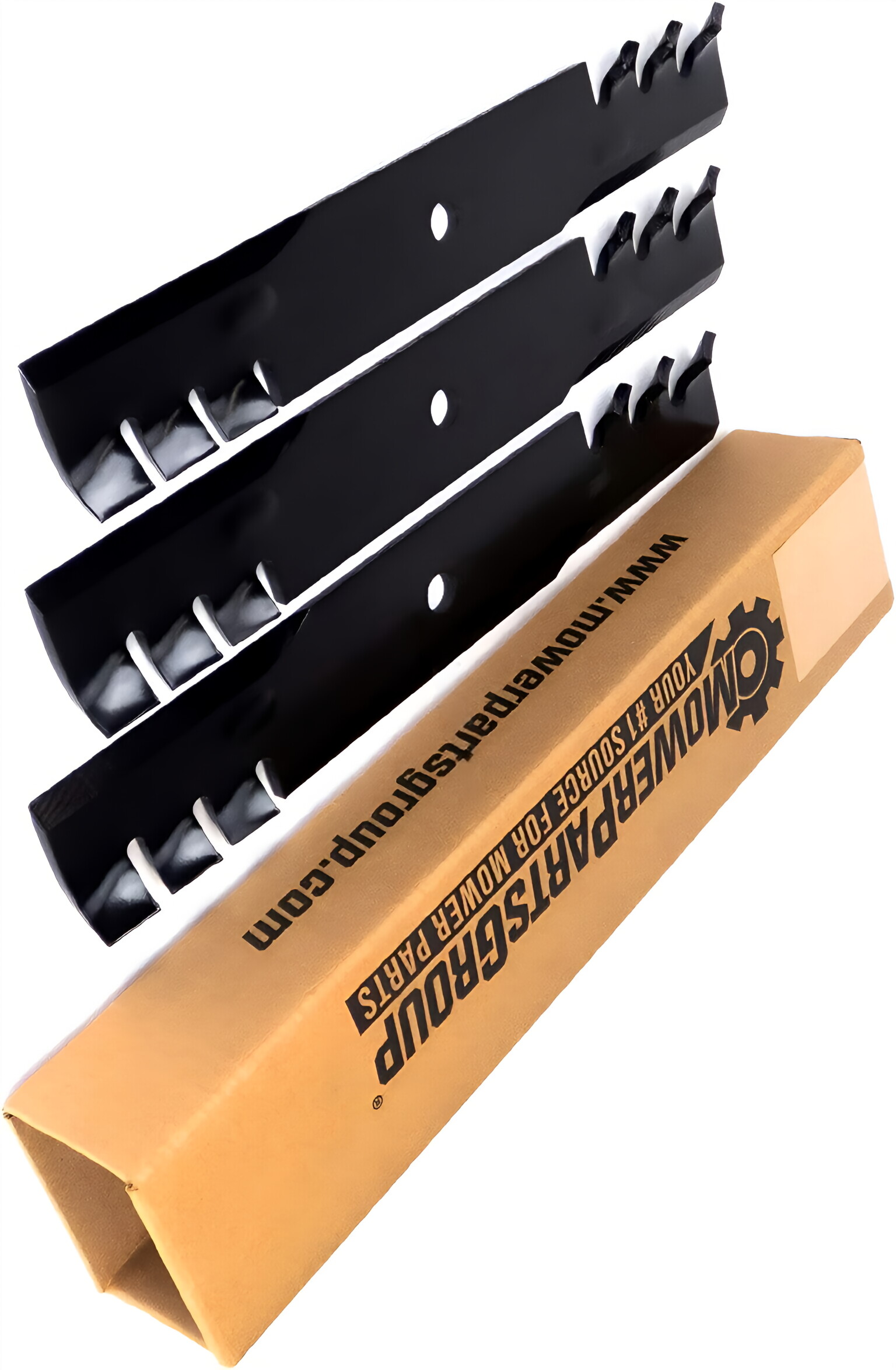 Our replacement blades have a history of proven performance and durability. They are made of high-quality materials that offer superior strength and durability. They are classified as heavy duty blades due to their thickness and toothed mulching design.