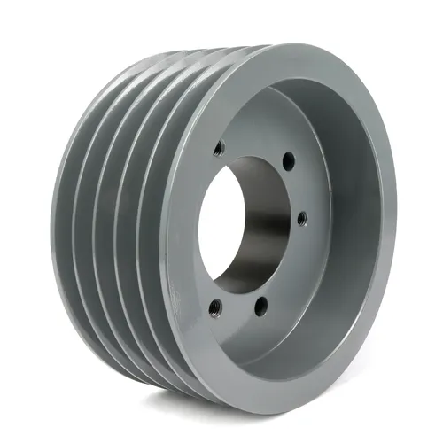 Size | Bushing Type | Pulley Type | Pitch Diameter (5L/B) | Pitch Diameter (4L/ A) | Outside Diameter | (E) | (F) | (L) | (M) | Pulley Weight (LBS) |