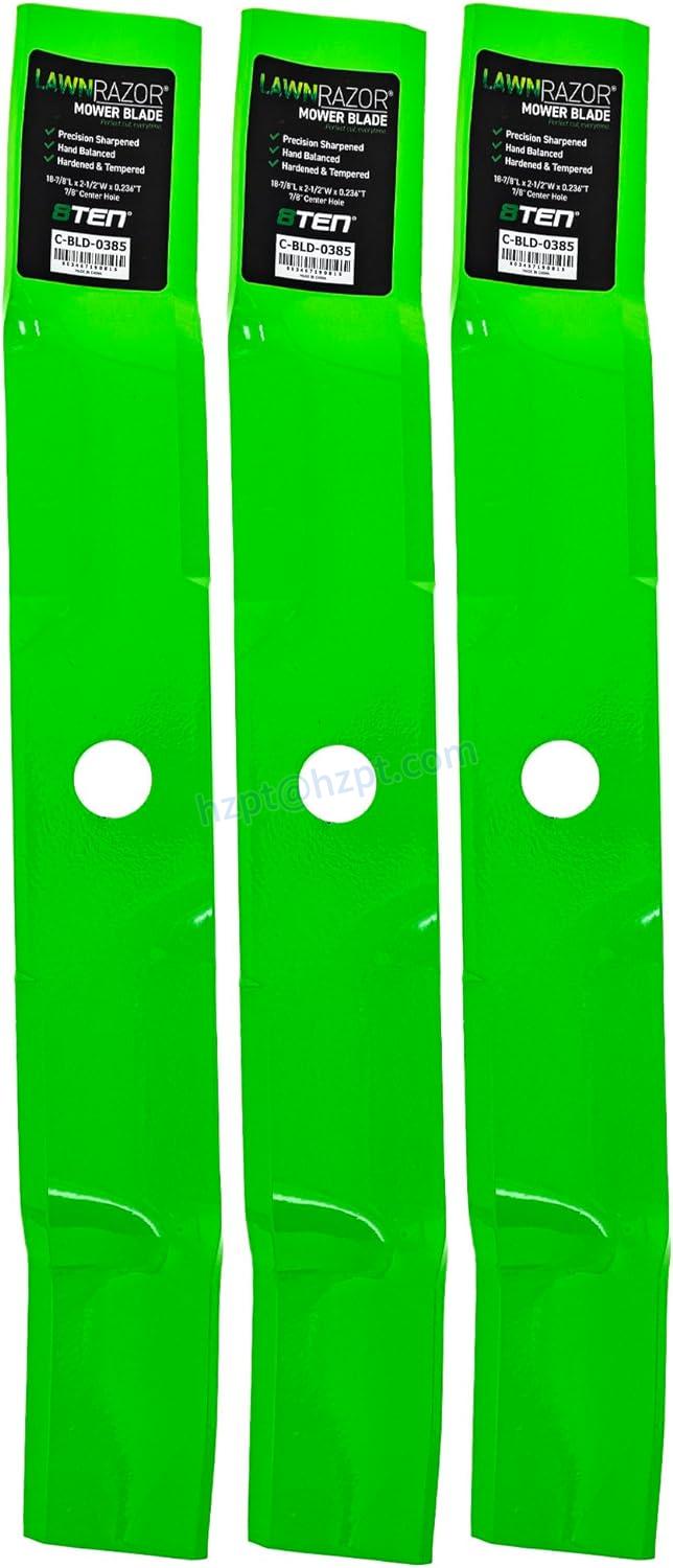 The 8TEN LawnRAZOR Blade is commonly used for residential and commercial lawn mowers. This blade is perfect for mulching grass and leaves, allowing for a cleaner and healthier lawn. The blade is easy to install and can be done by following a few simple steps. Once installed, the blade is low maintenance and can last for a long time with proper care.