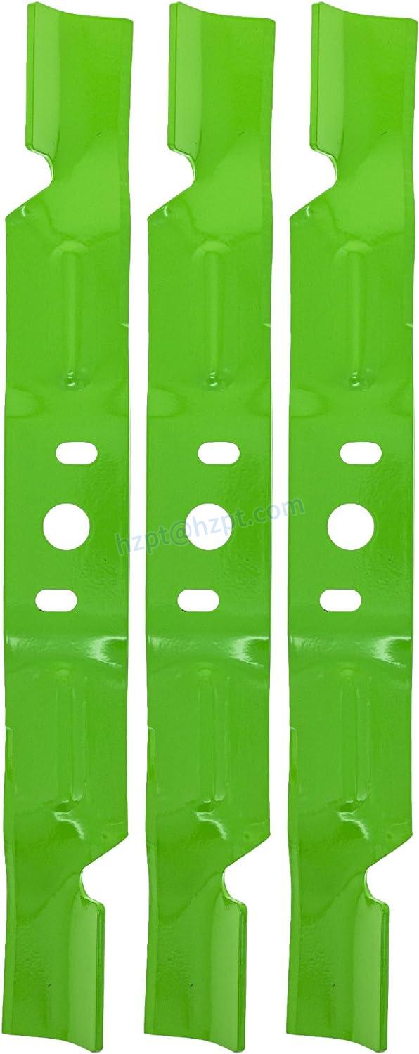 The 8TEN LawnRAZOR Blade Set for Husqvarna GT54 YT54LS 54 Inch Deck 581101101 (Mulching Notched) 3 Pack is a replacement part for Husqvarna lawn mowers. These blades are compatible with Husqvarna GT54CS, GT54LS, and YT54LS models. The blade set comes with three blades, and each blade has a length of 18 3/7", a width of 2 1/4", a thickness of 0.157", and a center hole of 4/5".
