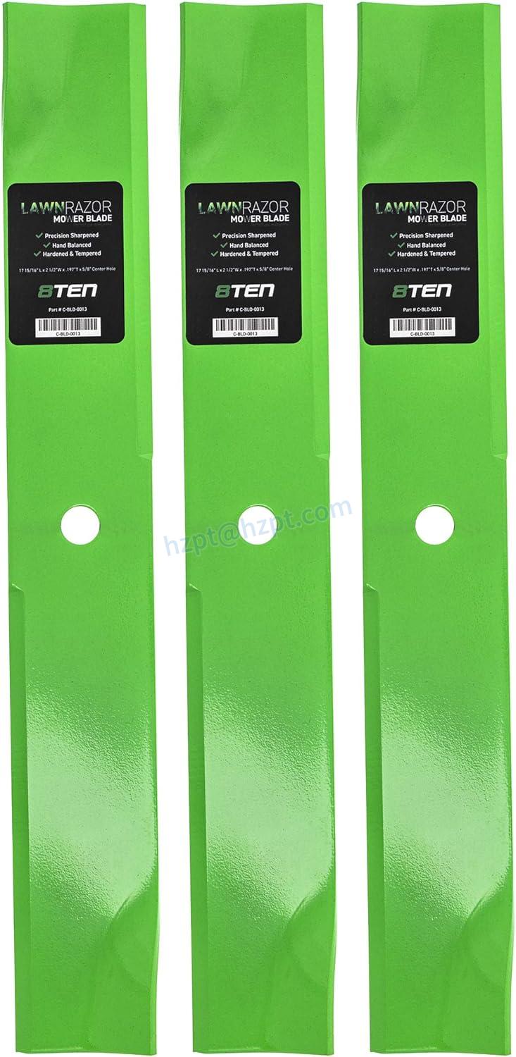 The 8TEN LawnRAZOR Blade Set has a long history of providing reliable and high-quality replacement parts for various models of lawn mowers and garden tractors. This blade set is classified as a medium lift blade, which means it can lift grass clippings and debris to provide a clean and even cut on your lawn or garden.