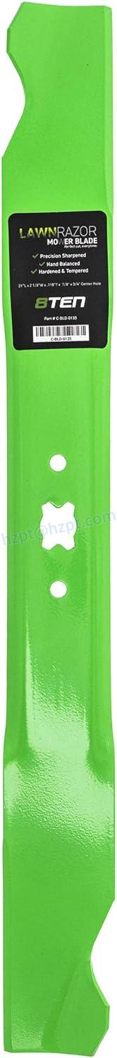 The 8TEN LawnRAZOR High Lift Blade is commonly used by lawn care professionals and homeowners to maintain a healthy lawn. The blade slices through grass and debris with ease, leaving behind a clean and even cut. It is suitable for use on flat and sloping terrain, and can be used on both residential and commercial properties.