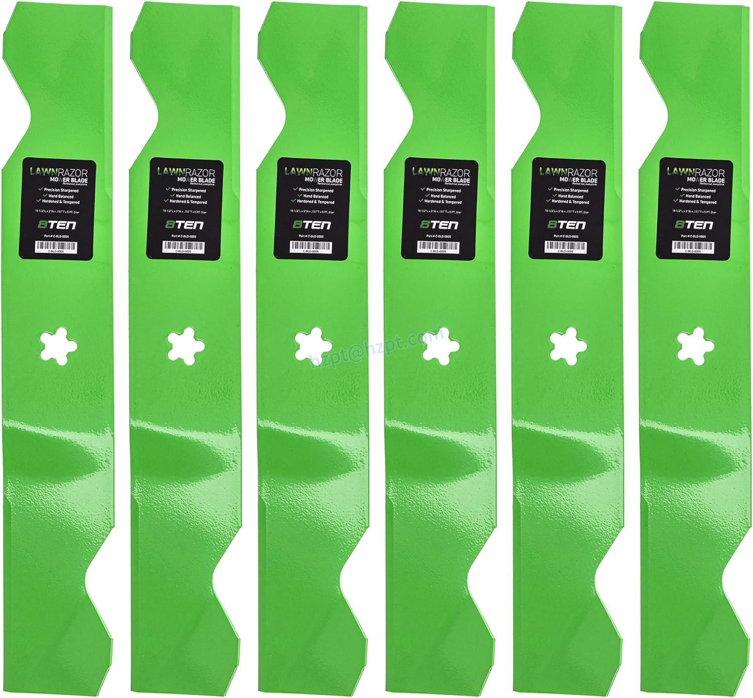 The 8TEN LawnRAZOR Mower Blade is compatible with various models, including Husqvarna and Ariens lawn mowers with 54-Inch Decks.