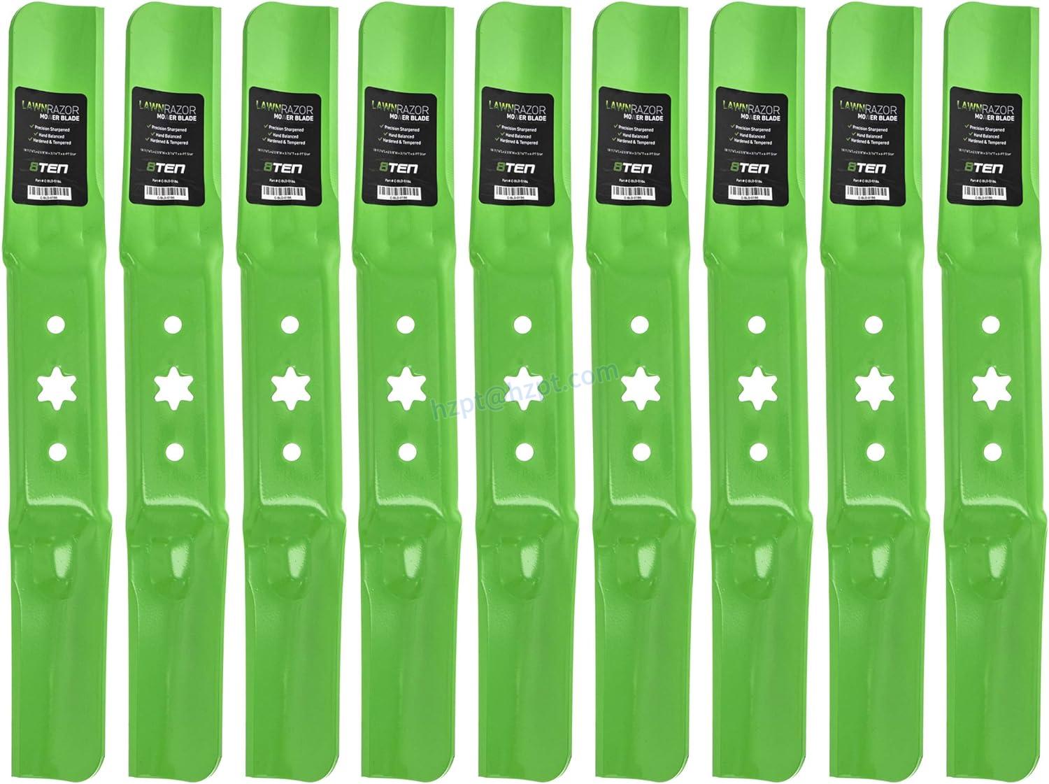The 8TEN LawnRAZOR Medium Lift Mower Blade is compatible with a range of MTD, Cub Cadet, and Troy Bilt lawn mowers with a 54-inch deck. Please refer to the list of compatible models in the original article to verify compatibility with your mower.