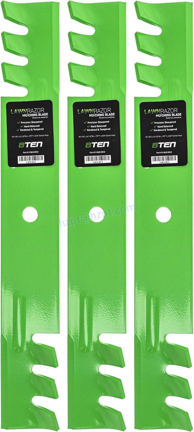 The 8TEN LawnRAZOR Mower Blade offers toothed mulching for a precise cut, durability, and long-lasting performance. It is easy to install, maintain, and replace, and improves lawn appearance and health.