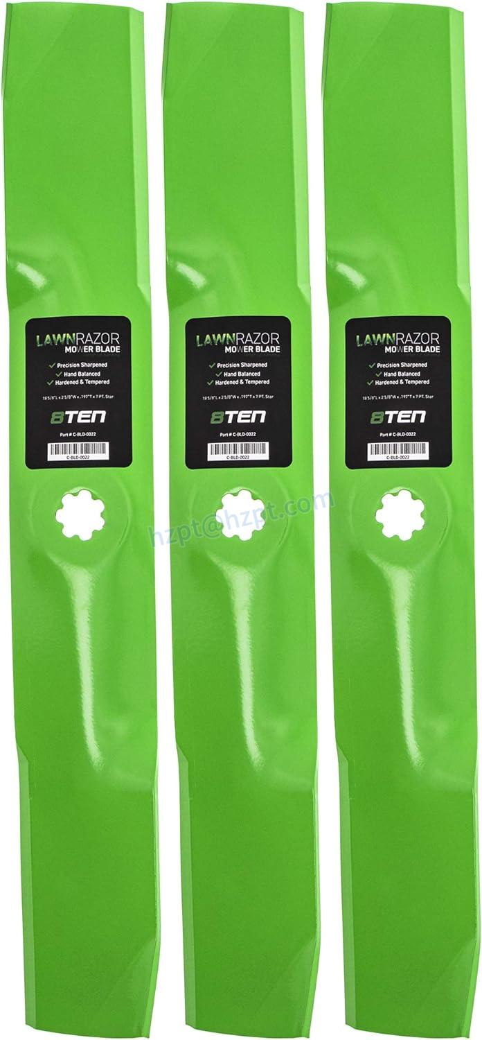 The 8TEN LawnRAZOR Mower Blade Set can be used for a variety of lawn care applications, including mowing lawns, clearing fields, and maintaining large properties. The sharp blades make it easy to cut through thick grass and weeds, and the durable design ensures a long lifespan.