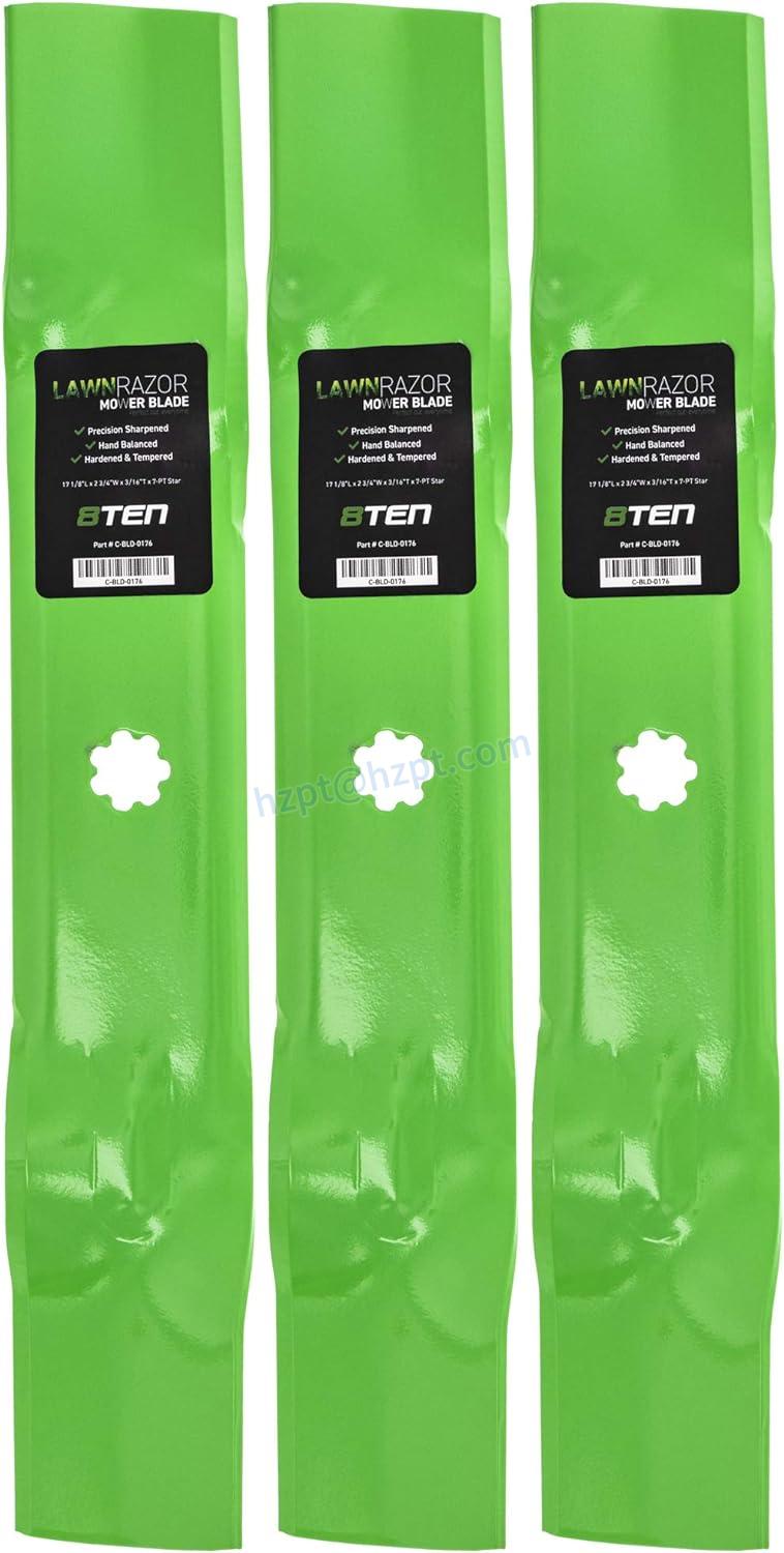 The 8TEN LawnRAZOR Mower Blade Set is a product of Raydafon, a company that mainly supplies a variety of replacement parts for Kubota farm machinery, such as Kubota blades, Kubota gearbox, Kubota shaft, Kubota gear, Kubota pulley, and other Kubota parts. The 8TEN LawnRAZOR Mower Blade Set is classified as a high-quality replacement part for John Deere mowers.