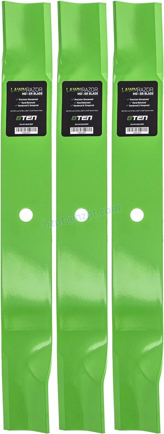 The 8TEN LawnRAZOR Mower Blade Set is a high-quality replacement blade set for Scag Ferris 61 inch 48111 482879 1520842 Husqvarna 539101733 mowers. These blades are made with rolled high lift technology which helps to improve the overall cutting performance of your mower.