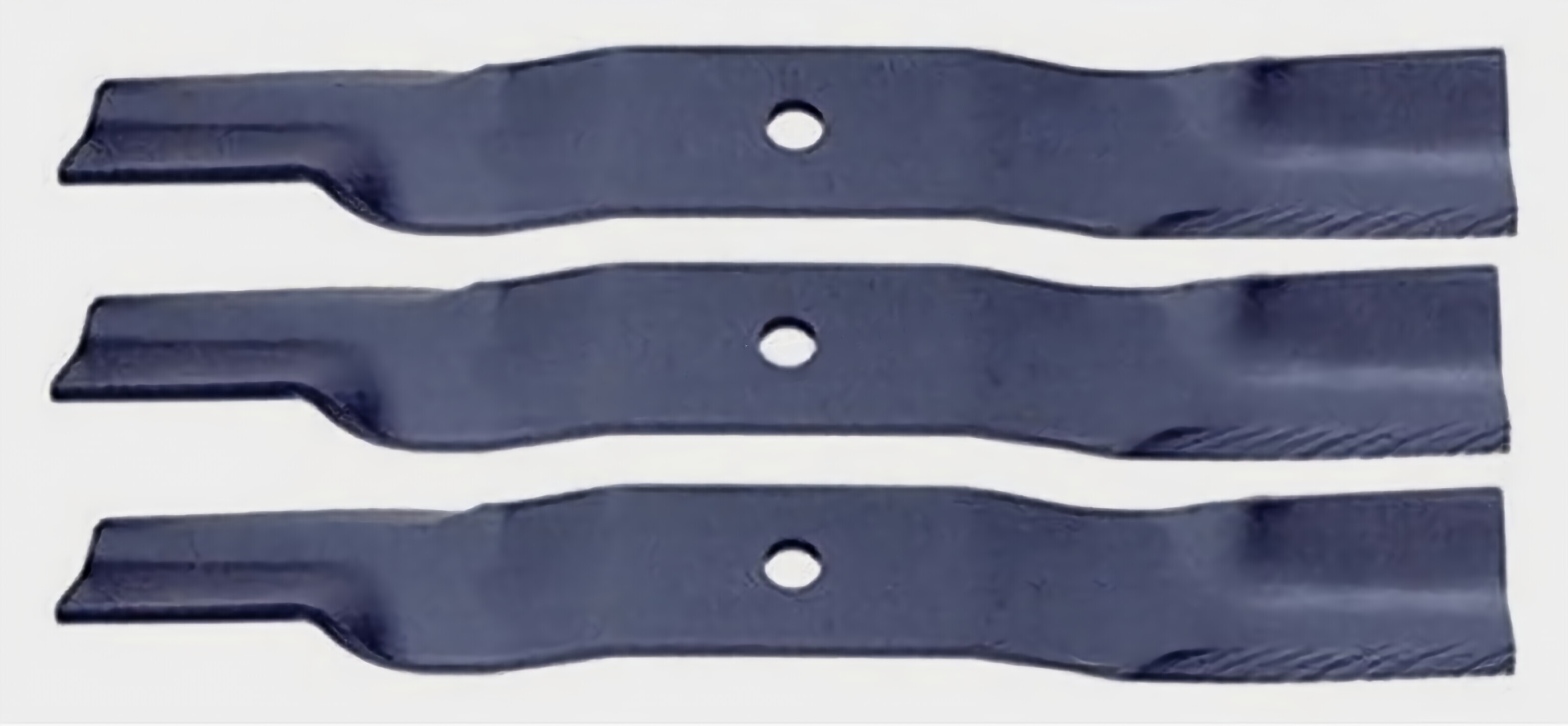 Our set of three (3) replacement blades are made in the USA and are some of the heaviest blades available for these mowers. Each blade has an overall length of 18-5/8", a width of 2-1/2", and a thickness of 1/4". The mounting hole measures 0.715 inches (18.1mm). These blades are compatible with the following Kubota models: H30T, Series 2G127, ZG23, GR2100, GR2110, BX-RCK54P, K327, RXK54-24G, RCK54-75G, RCK54TG on units with serial number over 24207.