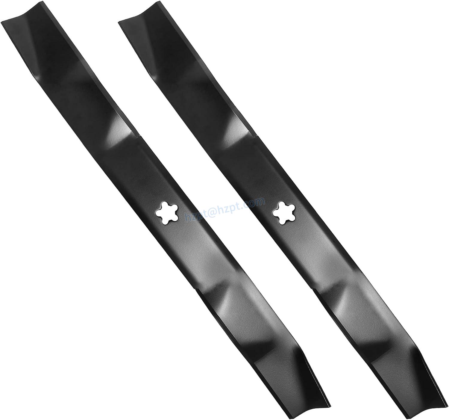 The mulcher blades with 5 point star center holes are installed with the curved ends facing the mower deck to make the better flow of the cuttings. Regular maintenance and sharpening of the blades are necessary to ensure optimal performance. If the blades become damaged or worn, they should be immediately replaced with new ones.