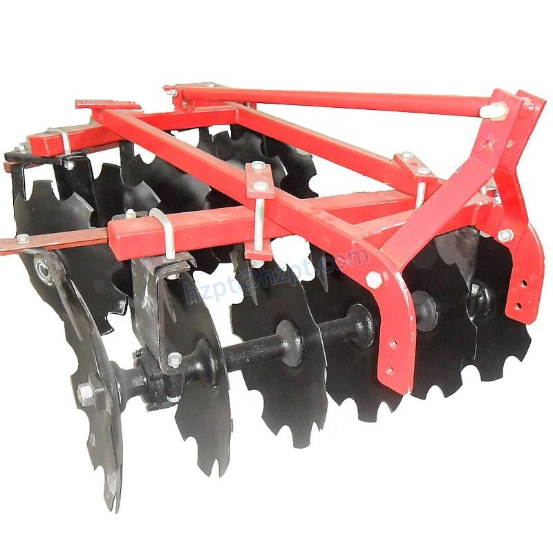 The Heavy Offset Duty Disc Harrow 1BZ-2.2 operates with high efficiency, owing to its durable 65Mn high spring steel blade material. The blades are 26 inches in size and work at a depth of 250mm to effectively till the soil. The working width of 2200mm ensures you cover more ground in less time. This disc harrow requires a power input of 80-110hp and utilizes a 3 Point Mounted linkage for a stable and secure connection to the tractor. The product type is categorized under agricultural farm machinery and it is color customizable based on your requirements.