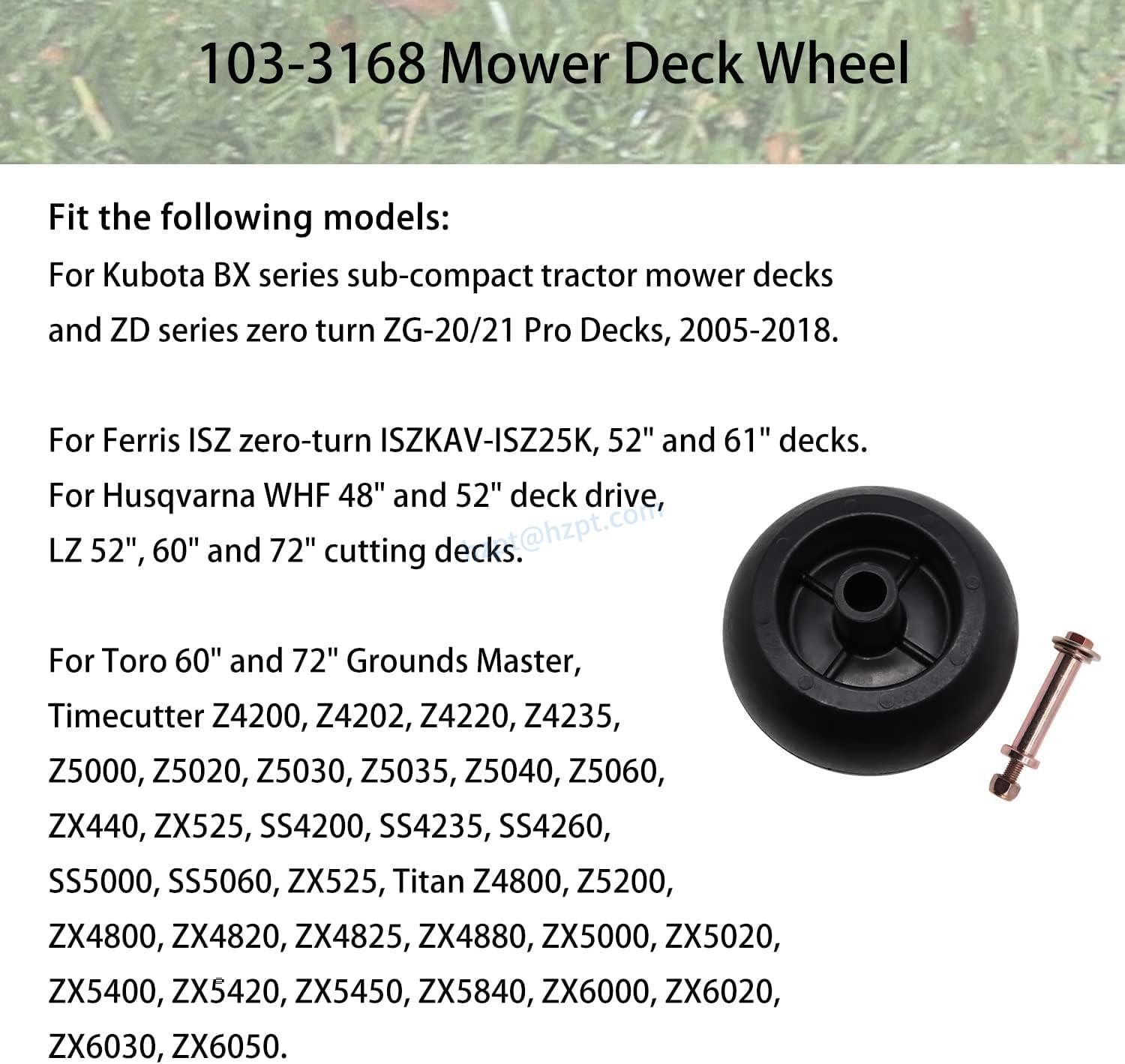 The Huarntwo Deck Wheel Hardware Kit is compatible with a wide range of Kubota machines, including BX series sub-compact tractor mower decks and ZD series zero turn mowers. Please make sure to match the OEM product part number and fitment.