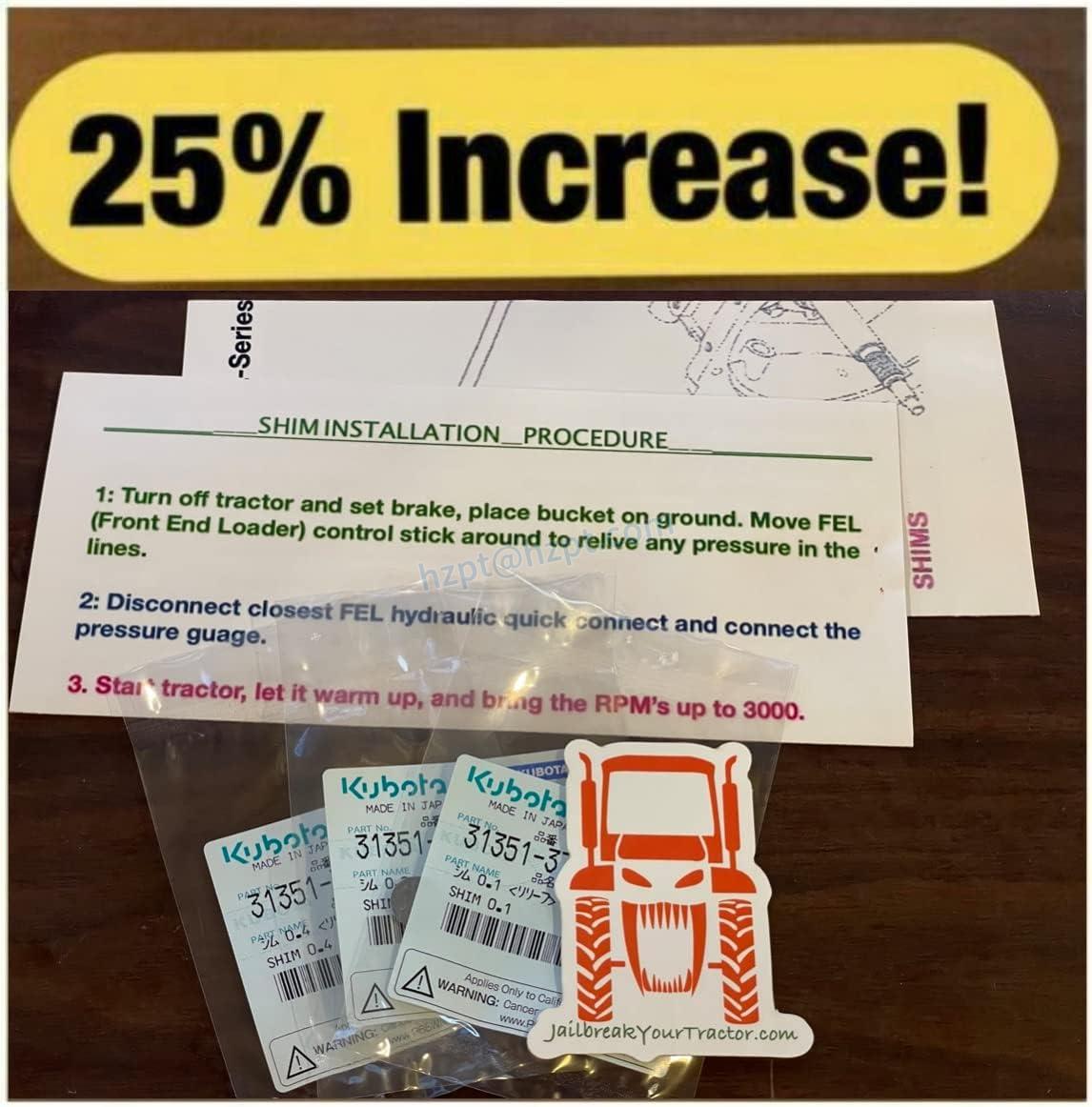 Kubota hydraulic pressure adjustment shims are used to increase the hydraulic pressure in your Kubota tractor, improving its power and performance.