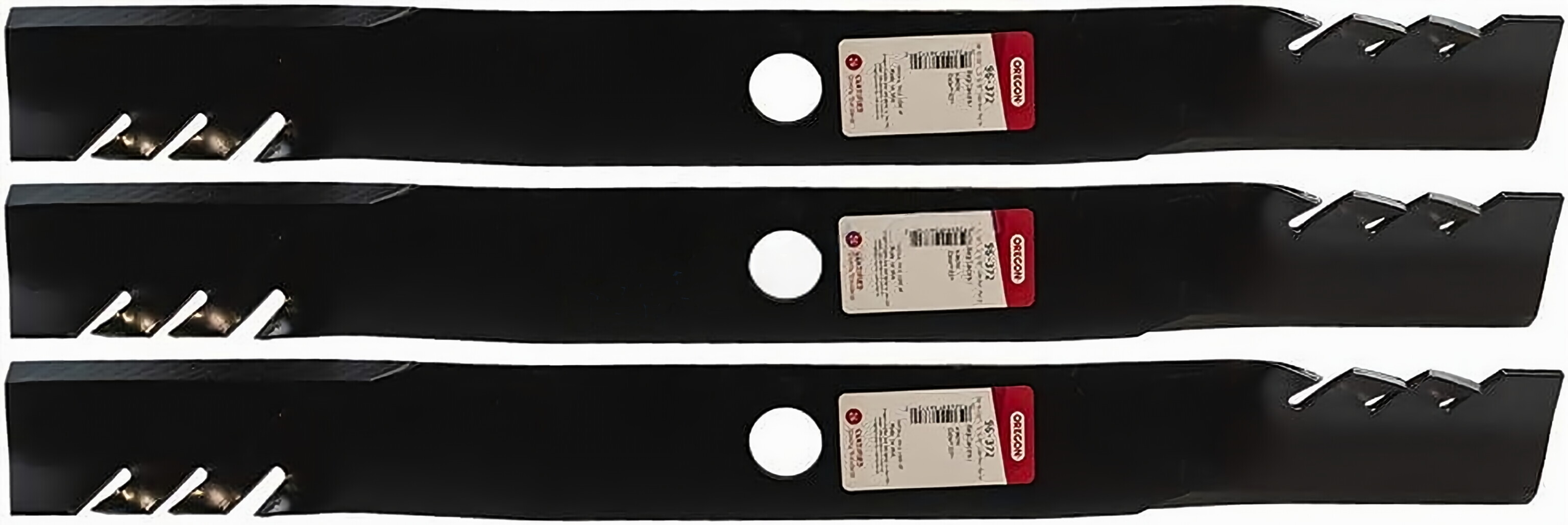 The Oregon 3 Pack 96-372 Gator Mulch Blade is designed to replace Kubota part numbers 76553-34330, 70000-25002, 70000-25013, and 70000-25030. This pack contains three mower blades and is required for the RC72 deck used on B2150D, F2560, and F3060 models. The blade length is 24-1/2 inches, the center hole is 1-1/8 inches, the width is 2-1/2 inches, and the thickness is .250 inches. The Oregon part number is 91-493.