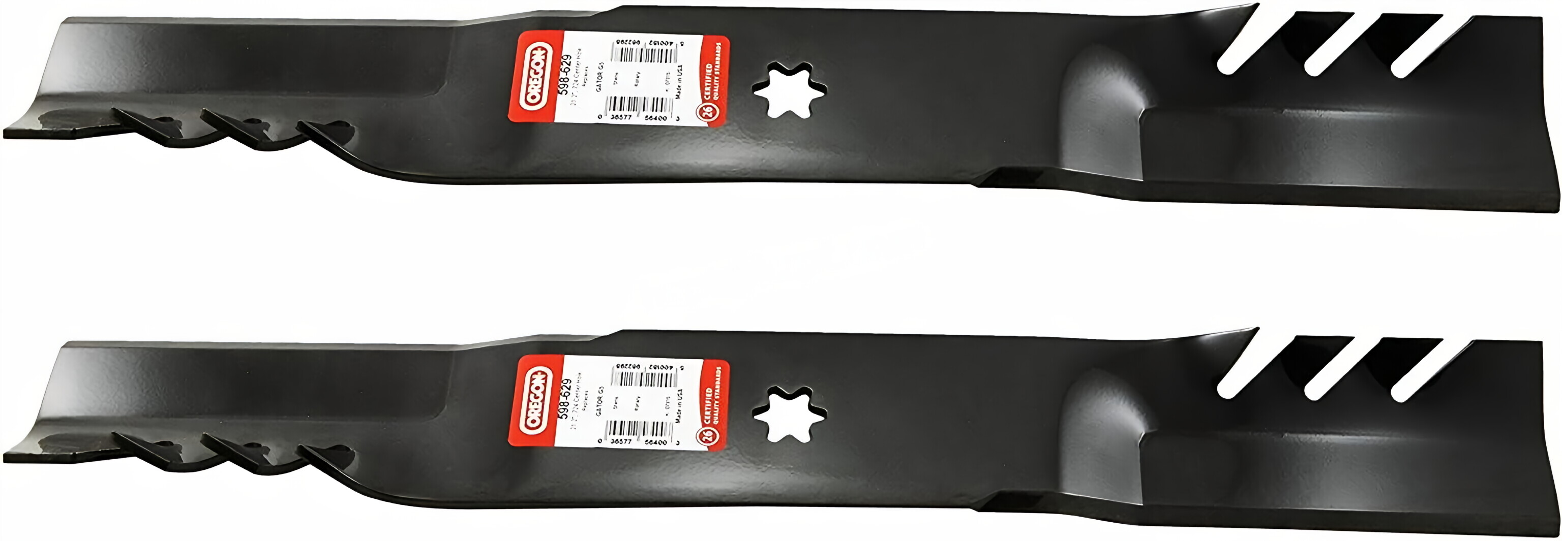 The Oregon 598-629 Gator G5 21-3/16" mulching blades are a top-quality replacement for MTD, Cub Cadet, Toro, Troy-Bilt, Bolens, and Windsor blades. Sold in packs of two or four, these blades are made with Tungsten Carbide fused to the edge for exceptional durability and strength.
