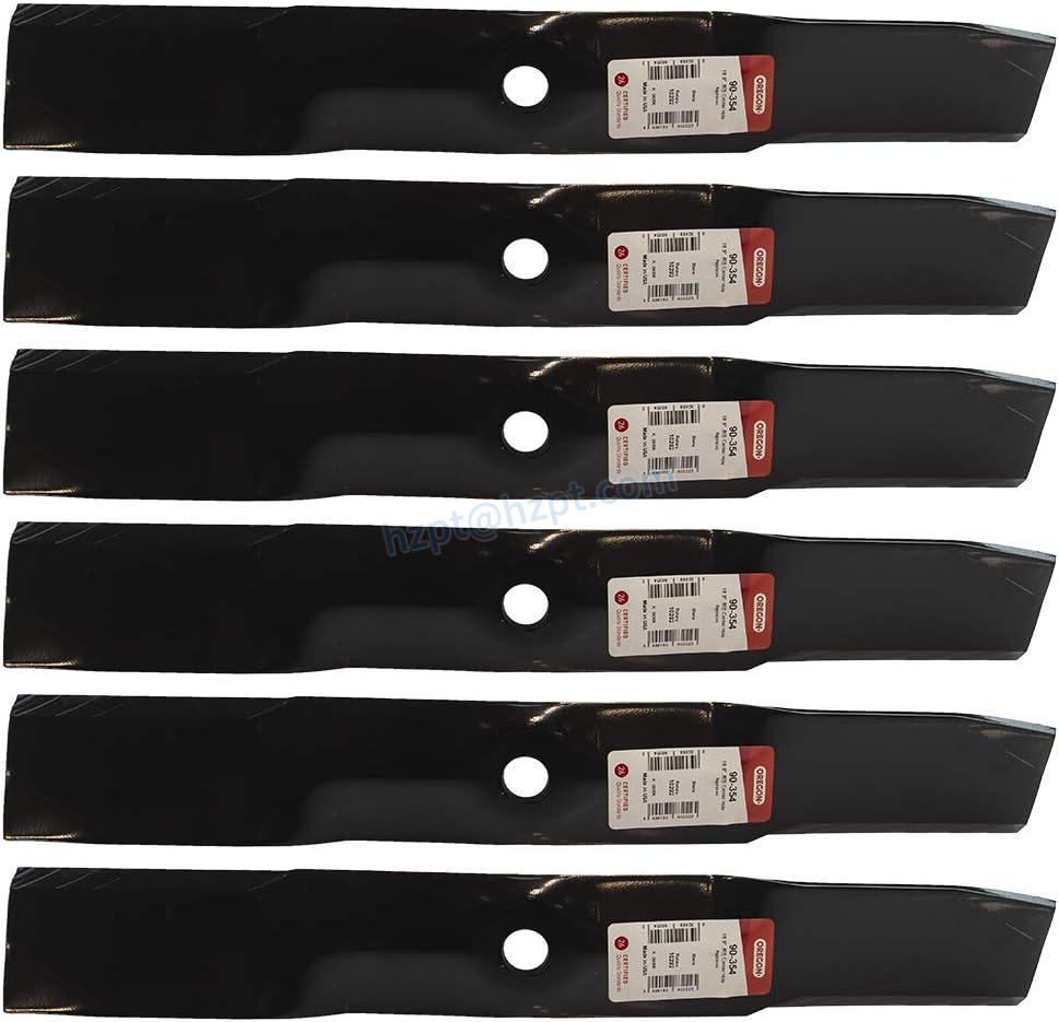 The Oregon 6 Pack 90-354 Mower Blade is a high-quality replacement blade for John Deere mowers. It replaces John Deere Part #'s M143520 & M145516 and is perfect for 54" cut, convertible deck mowers. This blade has a length of 18-7/8", a center hole of 13/16", a width of 2-3/4", and a thickness of .250".