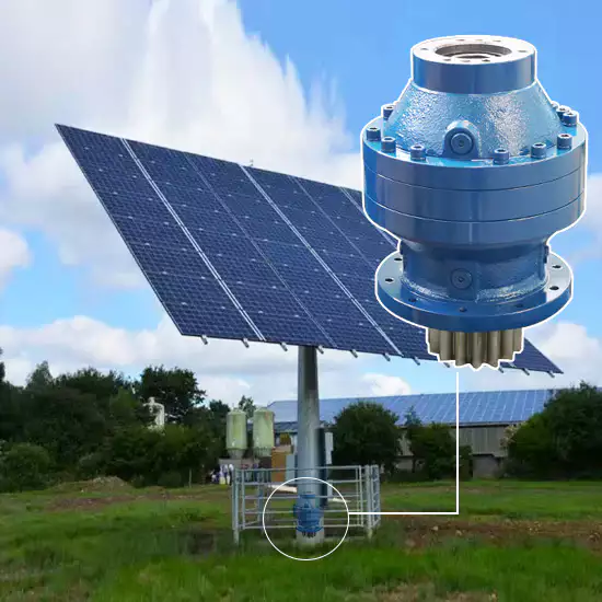 Planetary gearbox reducers play a central role in solar tracking systems, especially those installed in the vertical pillars supporting solar panels. They are key components for solar panels to efficiently capture sunlight and maximize energy output. The solar tracking system automatically adjusts the direction and angle of the photovoltaic panels to ensure that the panels always face the sun to obtain the best lighting angle, which is directly related to the power generation efficiency of the solar system.The application of planetary gearbox reducers in solar tracking systems not only improves solar energy collection efficiency, but also ensures the long-term reliability and economy of the system. It is an important technical support for promoting the widespread application and sustainable development of solar energy technology. As the solar energy industry continues to expand and technology continues to innovate, the design and performance of planetary gearbox reducers will be further optimized to better serve the future sustainable energy system.