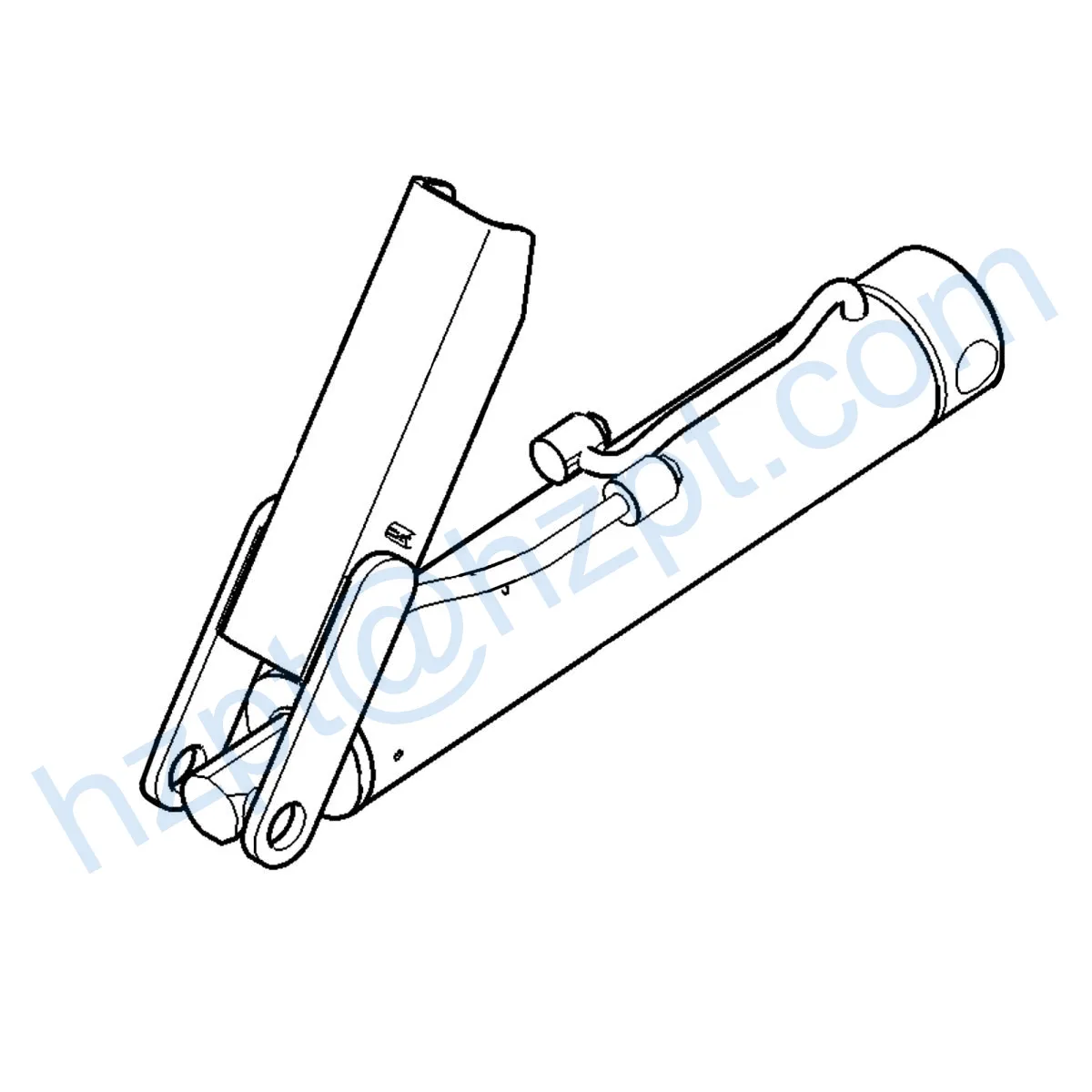 The hydraulic cylinder is designed to withstand heavy loads and provide reliable force through the stroke.