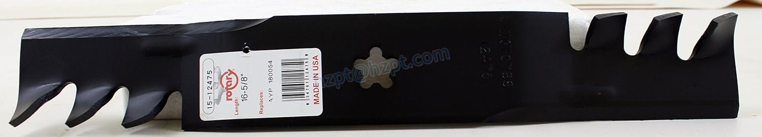 Our replacement lawnmower blade set includes three blades, each with an individual length of 16 5/8”. The center hole of each blade is a 5 point star. The blades are made with Copperhead / Gator Mulch technology, ensuring efficient and clean mowing. Please check the description for replacement part numbers and fitment information.