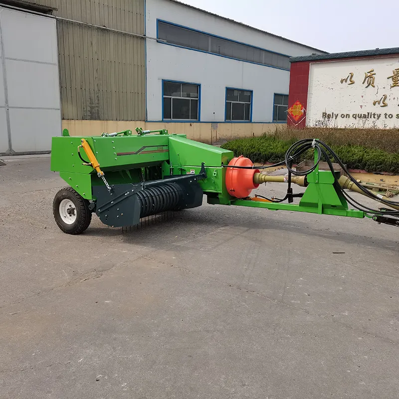 A tractor-mounted hay square baler is a type of baler that is attached to a tractor using the tractor's PTO system. It works in conjunction with the tractor's hydraulic system to gather, compress, and tie hay or straw into square bales. Here's a step-by-step overview of how a tractor-mounted hay square baler typically operates: