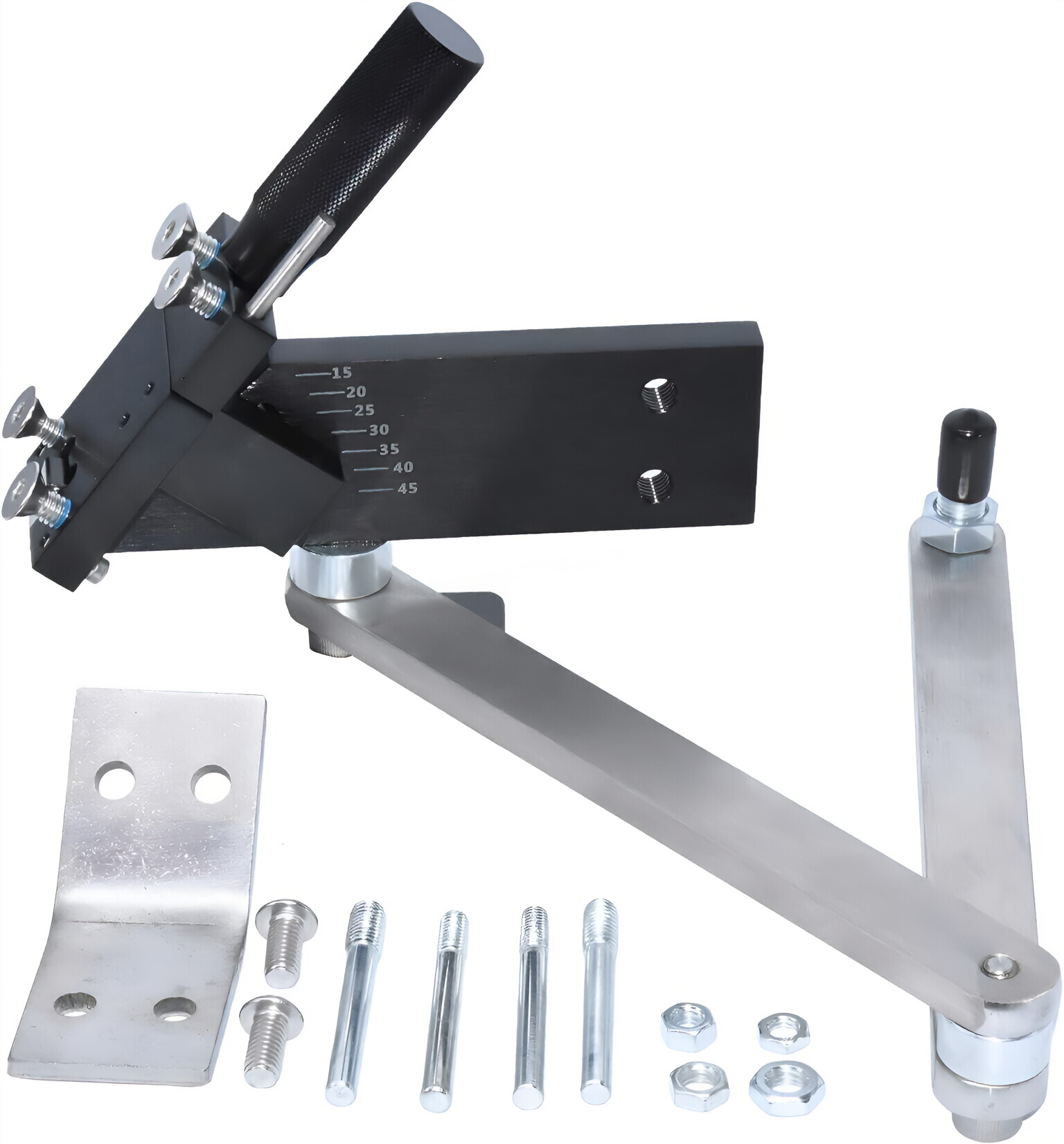 The SEEBOO Sharpener Model 5005 Lawn Mower Blade Sharpener is an excellent tool that adjusts and locks at 15-45 degree angles in 5 degree increments to sharpen blades perfectly at the correct angle. It is designed to sharpen standard, mulching, and high-lift blades with a 7-14 cm width. The rotatable head allows sharpening cover blades, and the sub-head and articulating arm hold the blade securely, making it completely portable with the use of a cordless grinder. The product is made of high-quality aluminum material with a surface coating to prevent rust and premature failure to ensure that it can work for a long time.