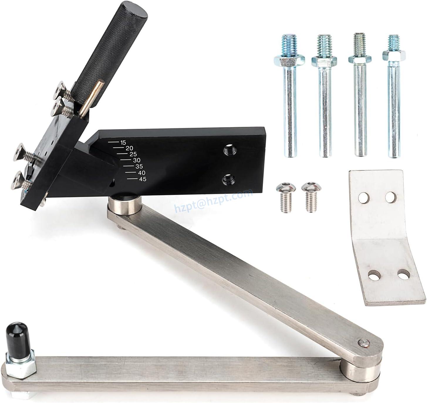 The Sharpener Model Lawn Mower Blade Sharpener is an essential tool for maintaining the tip shape of mower blades before the mowing season begins. With a flapper wheel, this mower blade sharpener is ideal for grinding 7-14 cm wide blades. The sharpener includes 4 adapter pins for sharpening standard straight, mulching, and high-lift mower blades. The rotatable head allows grinding the cover blade, and the crank arm is upgraded to connect by bearings to avoid angular deviation.
