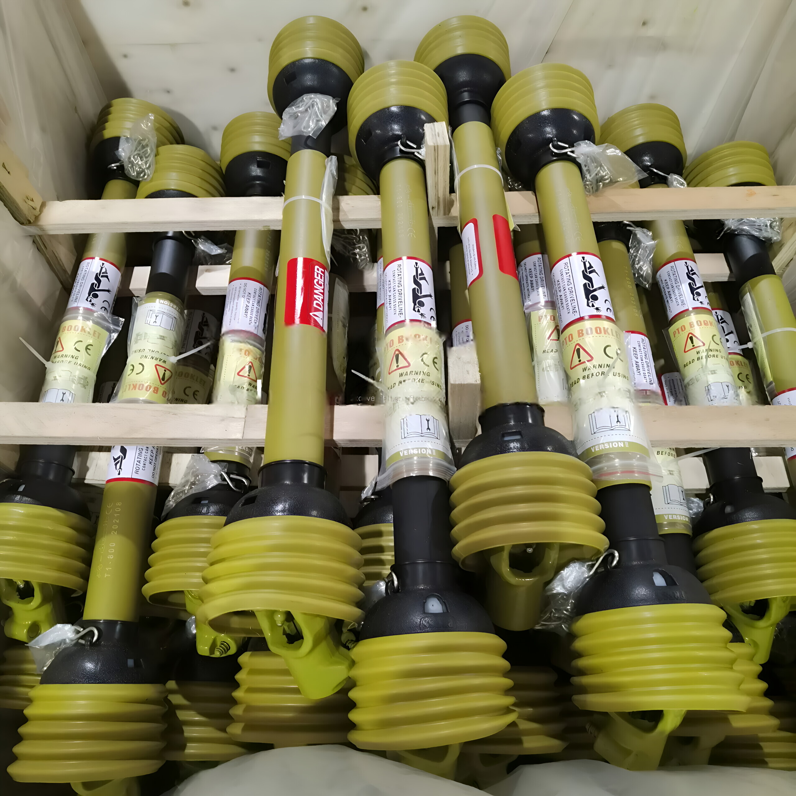 The T1 Length 800 mm PTO tractor spare parts cardan features a cross kit of 22*54, with teeth measuring 1 3/8'' Z6. The processing of the yoke is done by forging, ensuring durability and strength. It has a protective black yellow wave cover, and its tubes are triangular, ensuring maximum efficiency and stability during operation. The drive shaft parts are designed for optimal power transmission, making it suitable for use in various types of tractors and farm implements. The product also holds CE, ISO, and TS certificates, validating its standard and quality.