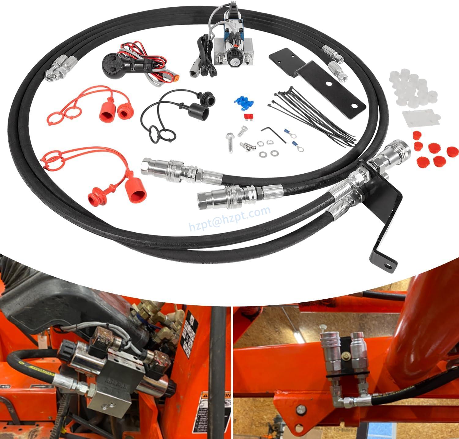 The third function valve kit for Kubota tractors is an optional hydraulic accessory that allows for the addition of an extra hydraulic function to the tractor's existing hydraulic system. This kit includes a control valve, hydraulic hoses, fittings, and any necessary mounting hardware. It is commonly used to operate hydraulic attachments such as grapples, augers, snowplow tilt, snow blowers, and other similar attachments.
