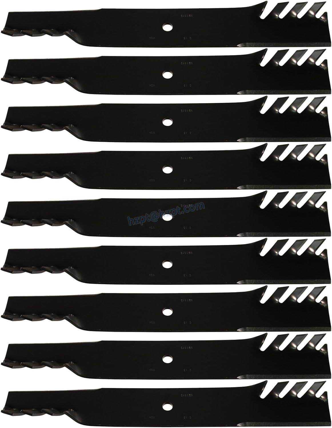 USA Mower Blades® offers various types of replacement lawn mower blades for different mowers. Our blades are classified according to their length, width, thickness, type of cut, and center hole size. The (9) MB1113BP blades, for instance, have a length of 21 inches, a width of 3 inches, a thickness of 0.240 inches, a toothed blade type, and a center hole size of 5/8 inches.