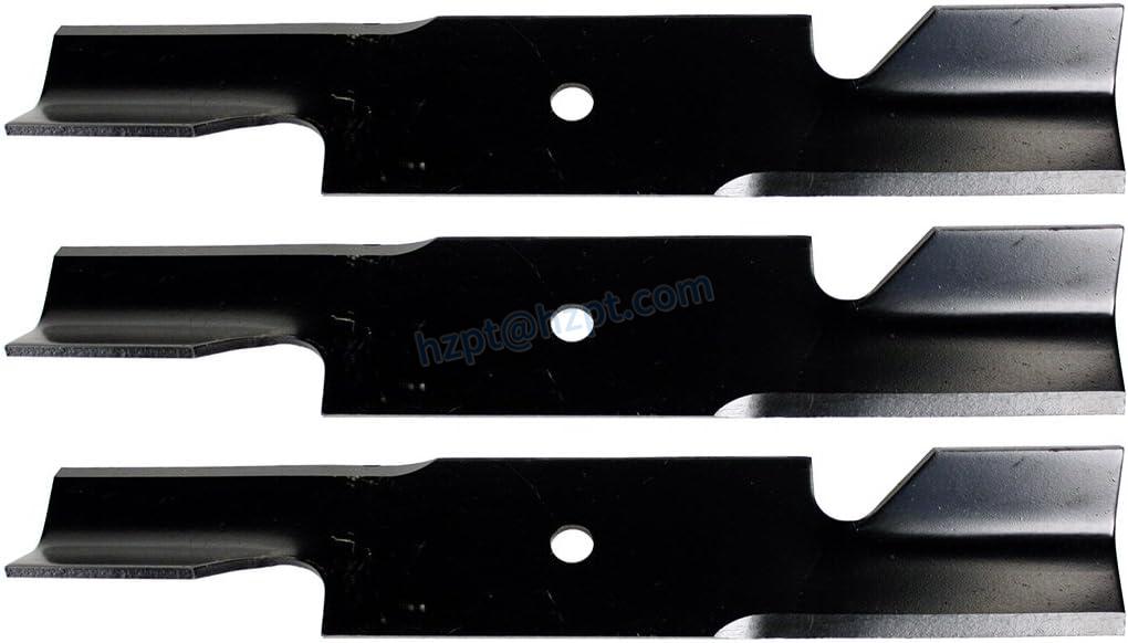 USA Mower Blades® U11185BP is a set of three replacement lawn mower blades that are designed to fit Encore, Ferris, Gravely, Lesco, Scag, Simplicity, and Worldlawn mowers. These blades have an extra high-lift design, which allows them to create more airflow to lift grass clippings, leaves and debris up and out of the cutting deck. They have a length of 18 inches, a width of 3 inches, and a thickness of 0.203 inches. The blades have a center hole of 5/8 inches and are designed to fit 36-inch, 52-inch, and 54-inch decks.