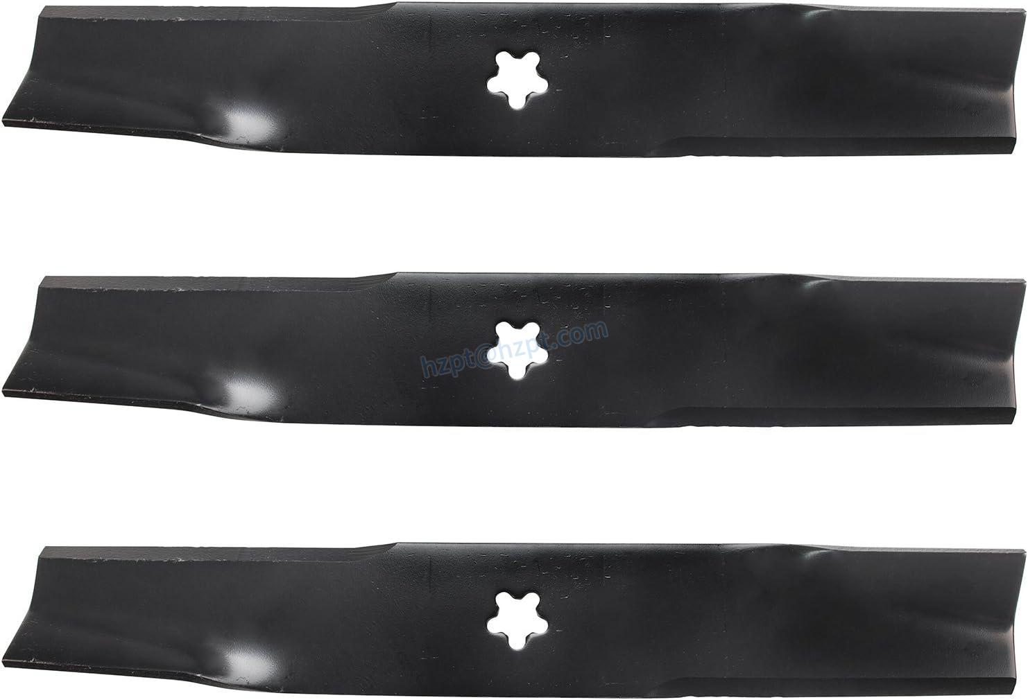 The USA Mower Blades U12025BP is a high-lift mower blade designed to fit various models of Husqvarna, Dixon, and Yazoo equipment. This blade is 16-1/4 inches long, 2-1/2 inches wide, and .200 inches thick, with a 5 point star center hole. One package includes three replacement blades.