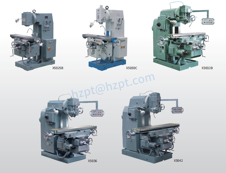 The X5025B, X5030C, X5032B, X5036, and X5042 Vertical Knee-Type Milling Machines are advanced equipment that seamlessly combine accuracy, power, and durability. These machines are designed to cater to a wide spectrum of milling needs, ensuring unprecedented precision and performance in various industrial applications. Whether you're shaping metal, wood, plastic, or other materials, these machines deliver a superior level of milling performance.