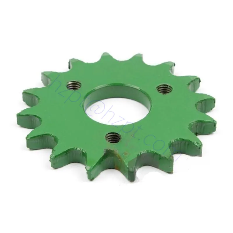 The Z30028 Sprocket Fits For John Deere is a high-quality replacement part for John Deere combines, specifically models 1032, 1055, 1166, 1169, 1174, 1188, 925, and 955. This sprocket is manufactured by Raydafon and weighs 0.24KG. It is available in various finishing options, including painting in green color, galvanizing, red, or OEM. The sprocket can be packed in cartons, wooden boxes, or iron boxes for convenient transportation and storage.